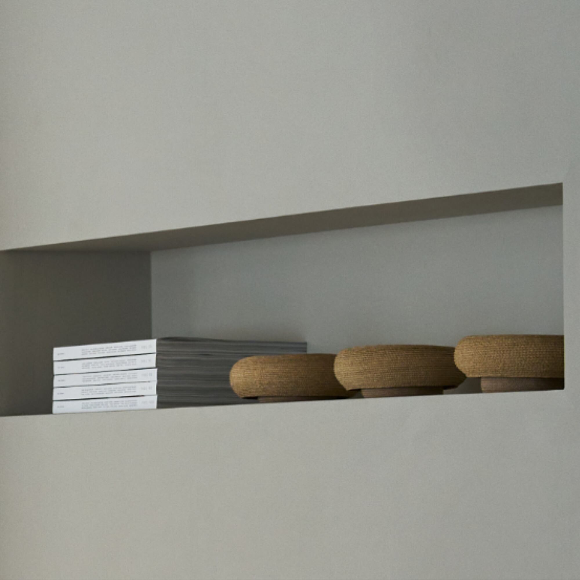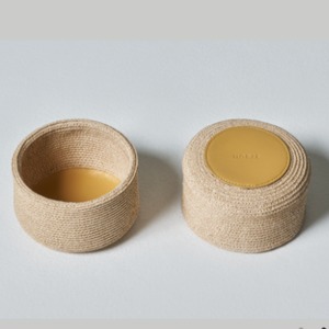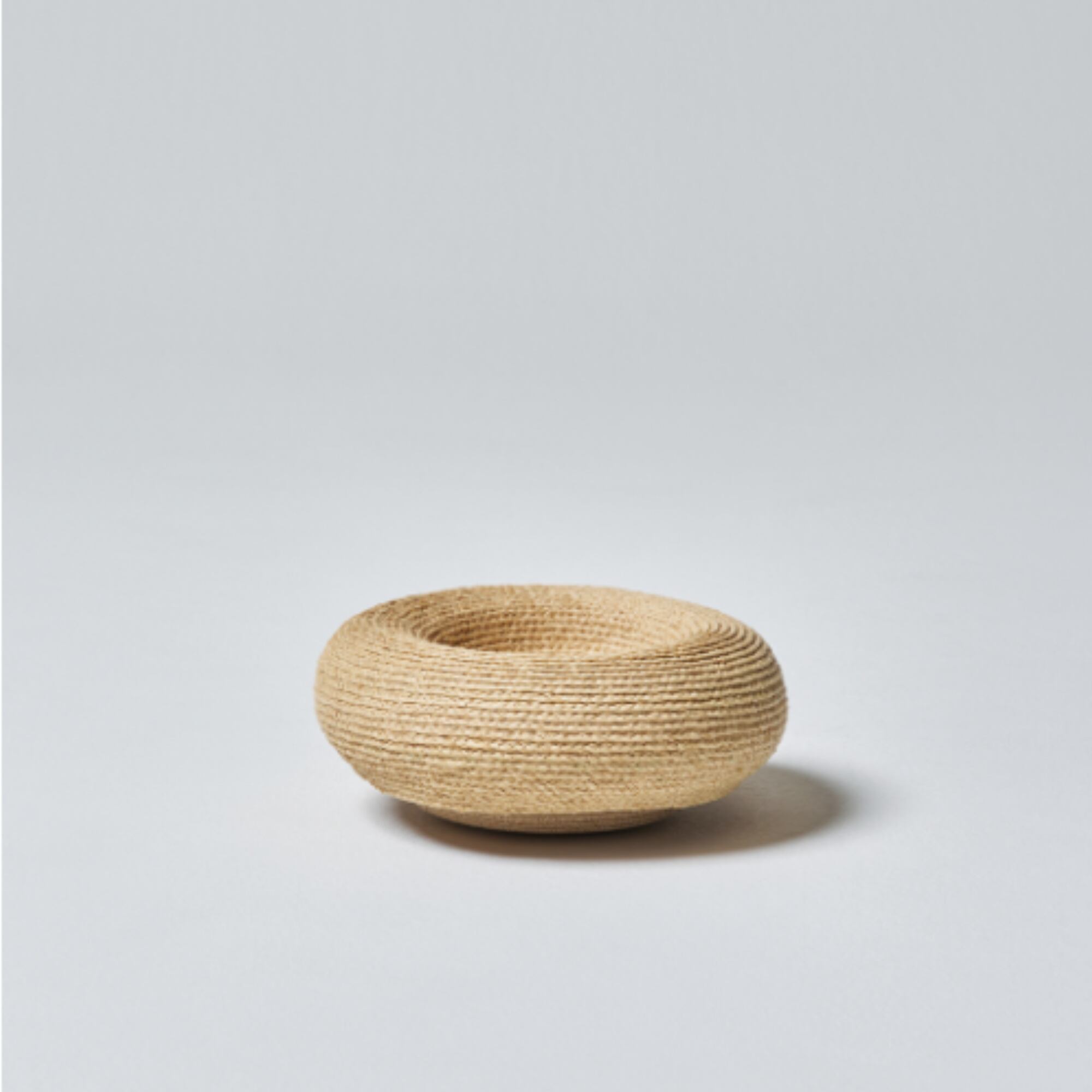 ドーナツ状の丸みのあるカバーは、弾力性のあるラフィア椰子素材でできており、特徴的な窪みが優しく受け止めてくれます。和紙素材と革で構成されたケースは、少しだけカバーを浮かせ、Tidy Houseに軽快さを与えてくれます。