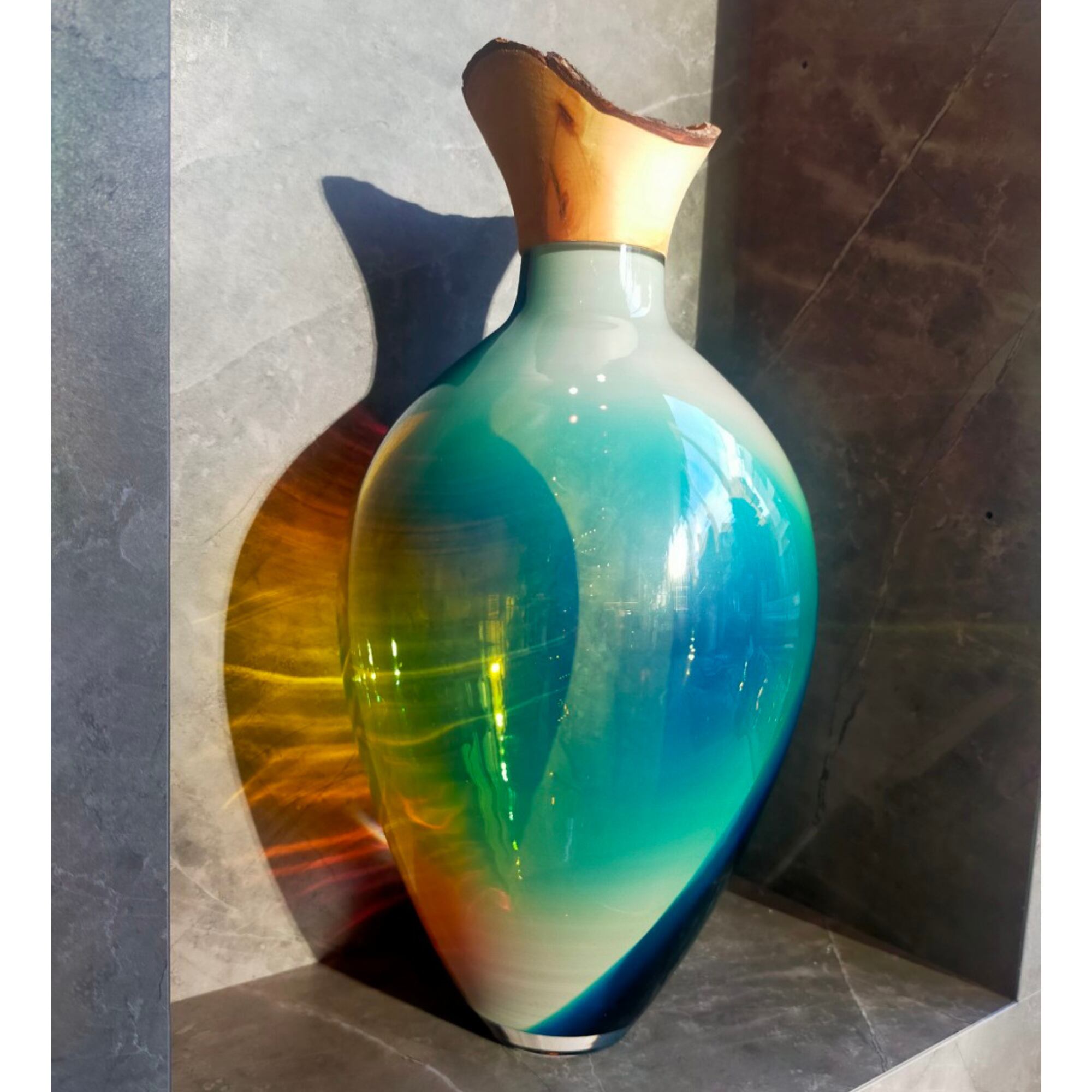 2色のガラスは見る角度により異なる表情で、存在感を放ちます。