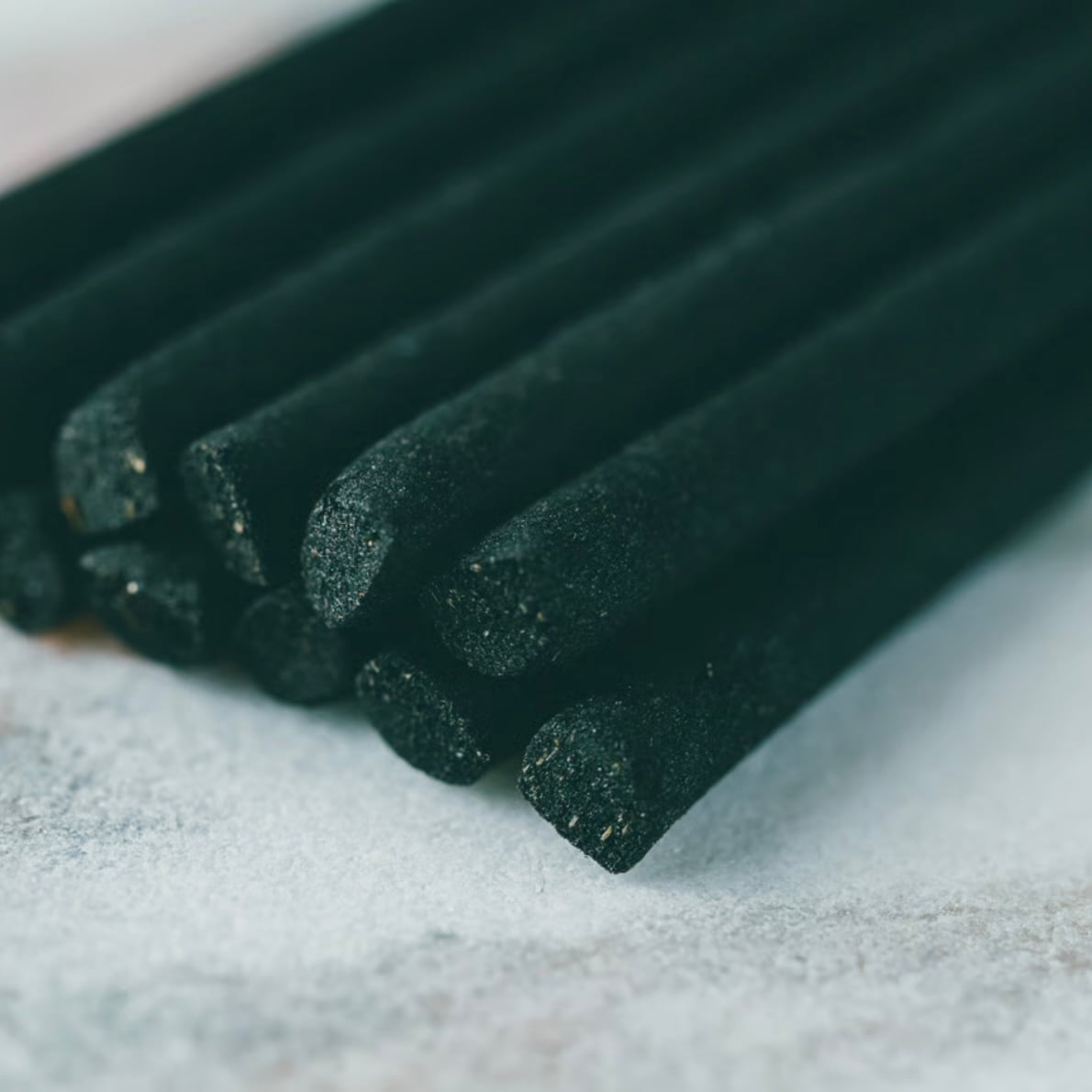 残香まで楽しめる美しい煙を追求して試行錯誤した結果、骨太で漆黒のお香に辿り着きました。お香職人・調香師のクラフトマンシップが活きる最高品質のお香です。
