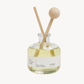 How to:キャップを外し、パイン材のスティックをボトルに挿してお使いください。スティックの本数で香りの強さが変わるので、空間の広さや好みにあわせて調整していただけます。