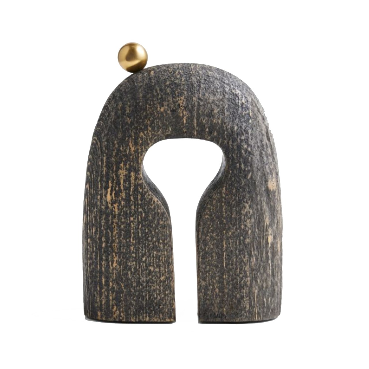 黒檀調の本体に、金色の可愛らしい球体が乗った遊び心のあるデザインです。