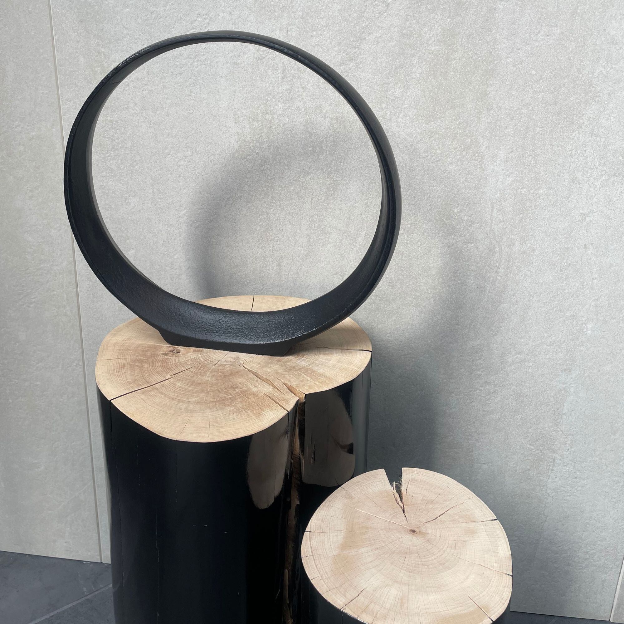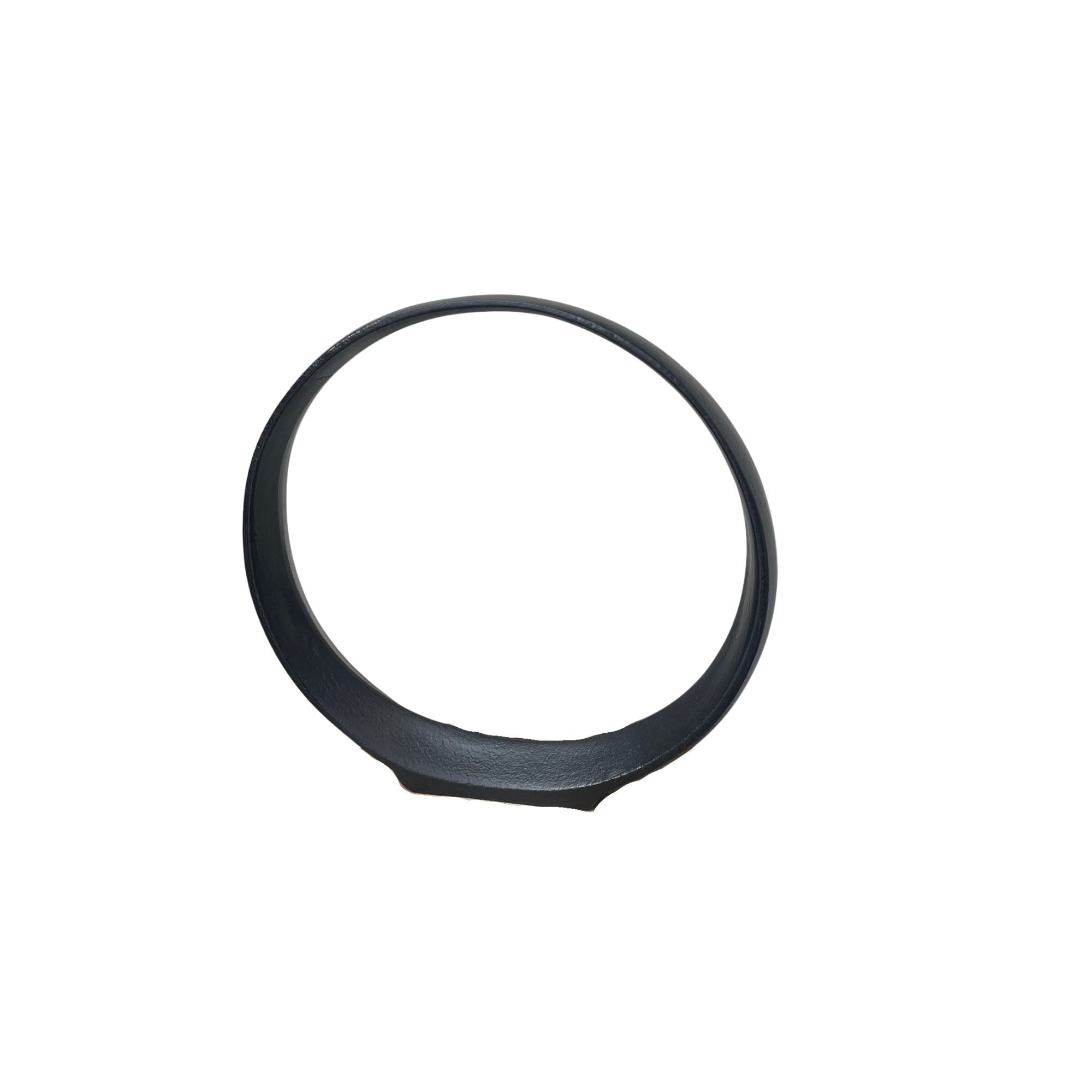 黒の鋳造アルミニウムの円形は、芸術作品のように力強く佇み、解釈の余地を残しています。彫刻的な曲線を描くエッジが、視覚的なディテールを際立たせています。