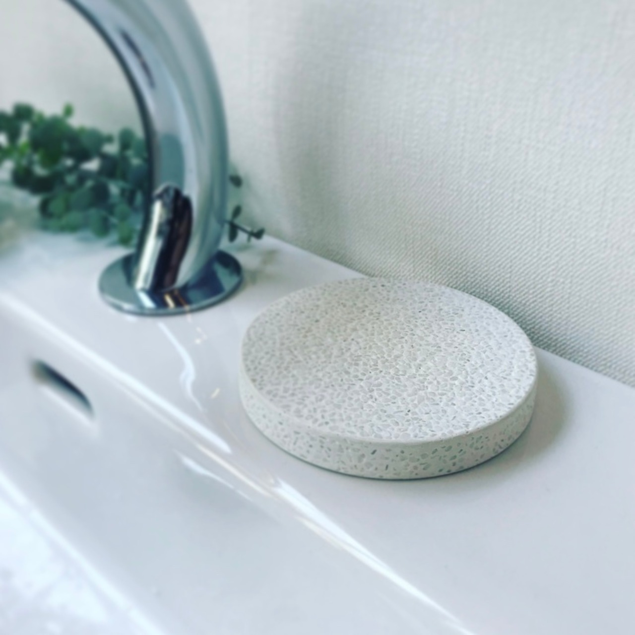 「soil(ソイル)=土」 呼吸する素材としても注目される珪藻土(けいそうど)を用いて作られた石鹸置き。