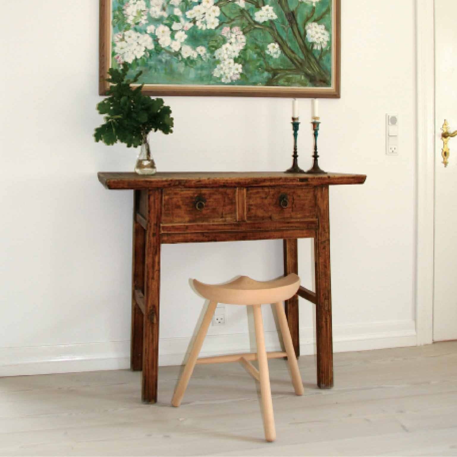 1970年代はじめに「シューメーカーチェア」の製作を始めたのは、現在のオーナーであるラース・ワーナーの父親でした。この3本脚のスツールの歴史は15世紀にさかのぼり、何世紀にもわたってわずかにそのかたちを変えたものの、平らな座面の牛の乳搾り用のスツールとして使われてきました。そのうちに、靴職人が座り心地を良くする為にお尻のかたちにあわせて削ったことがきっかけになり、それにインスピレーションを得て現在のかたちに近づきました。そのために、シューメーカーチェアと呼ばれるようになったのです。