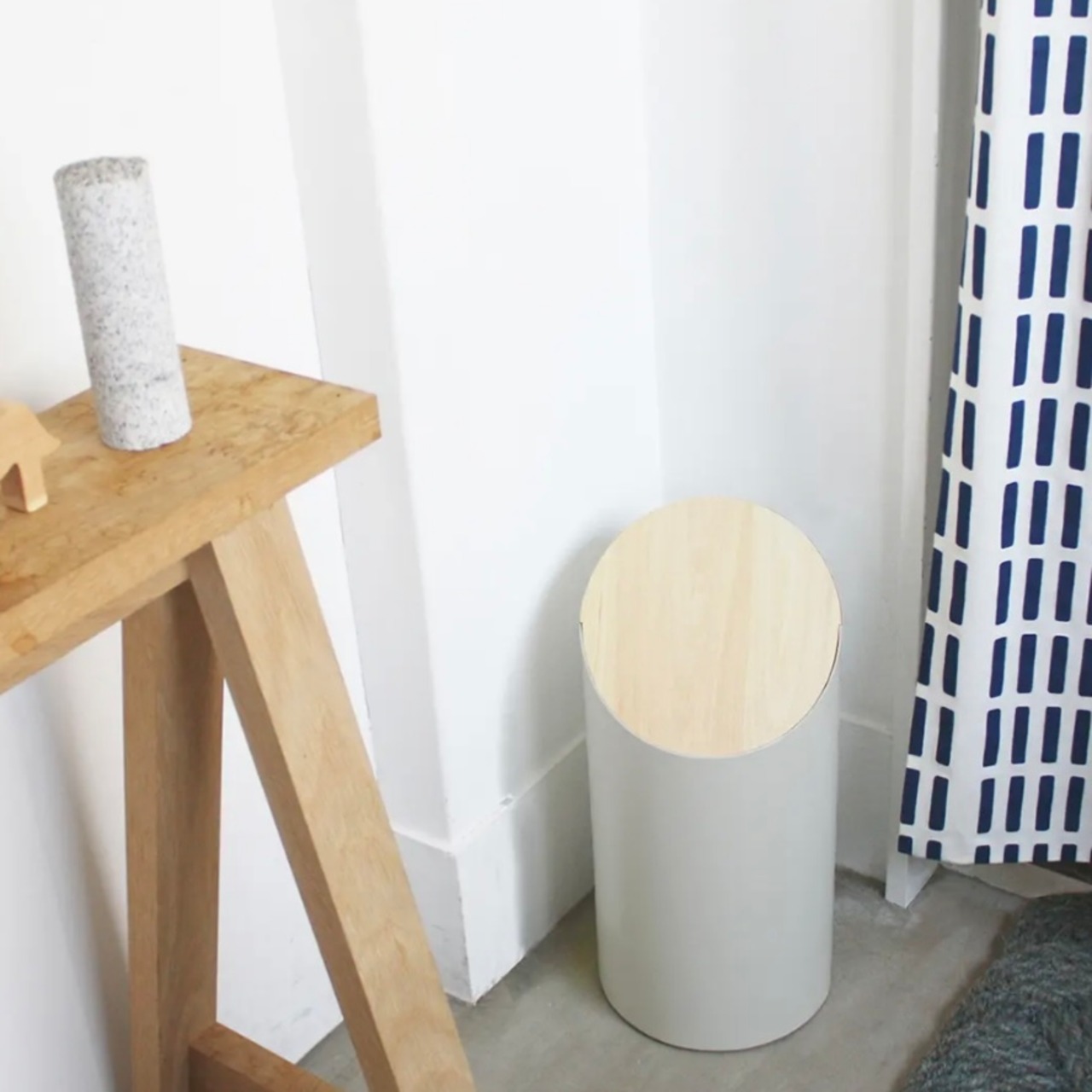 「シンプルであること」を限界まで追求して作り出されたゴミ箱。丸太木を斜めに切り落としたようなプリミティブなフォルムが、彫刻のように静かに美しく佇みます。