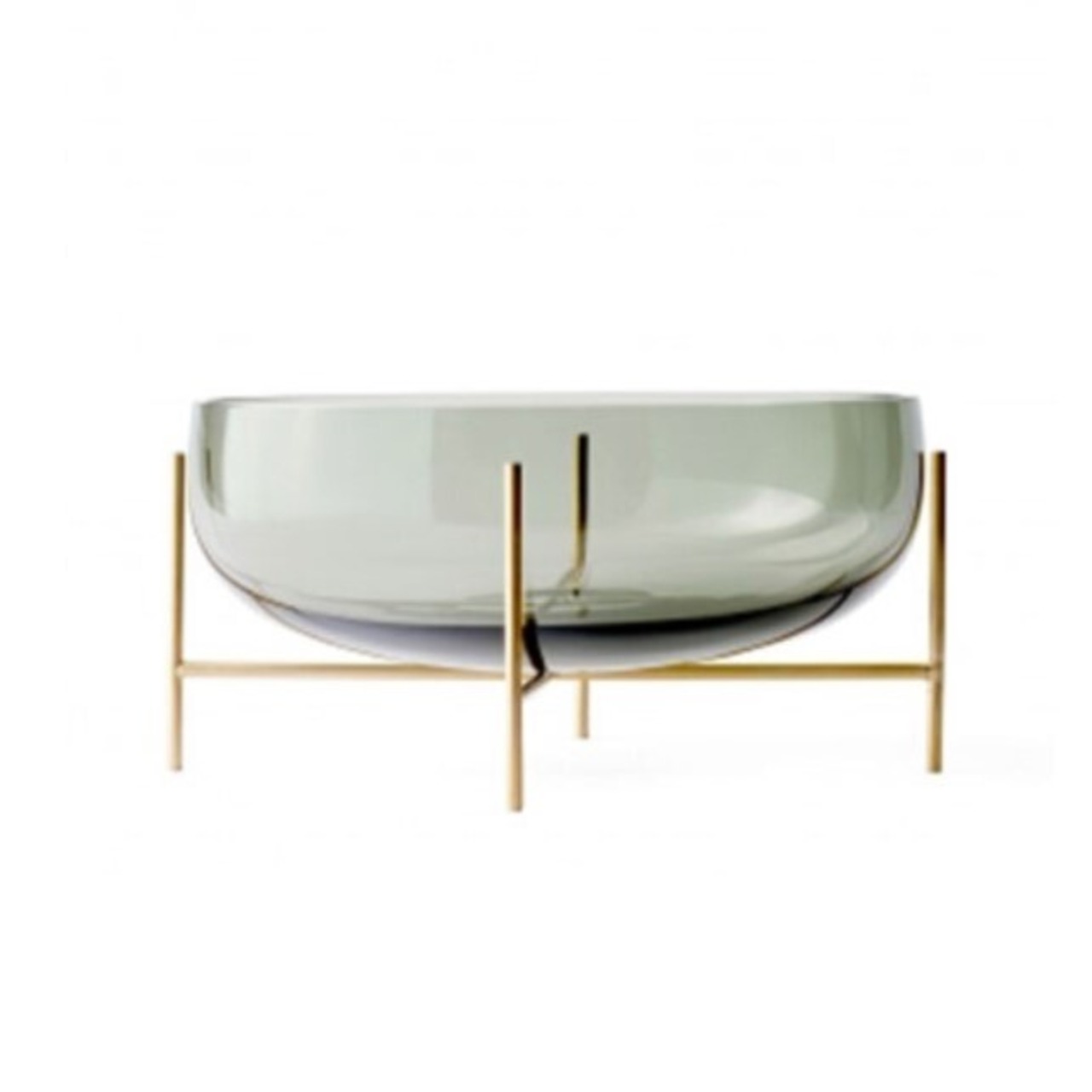 エシャス ボウル - スモーク ガラスとつや消し真鍮の 2つのサイズがあり、伝統的なサービング ボウルをモダンで目玉にふさわしいものに仕上げています。